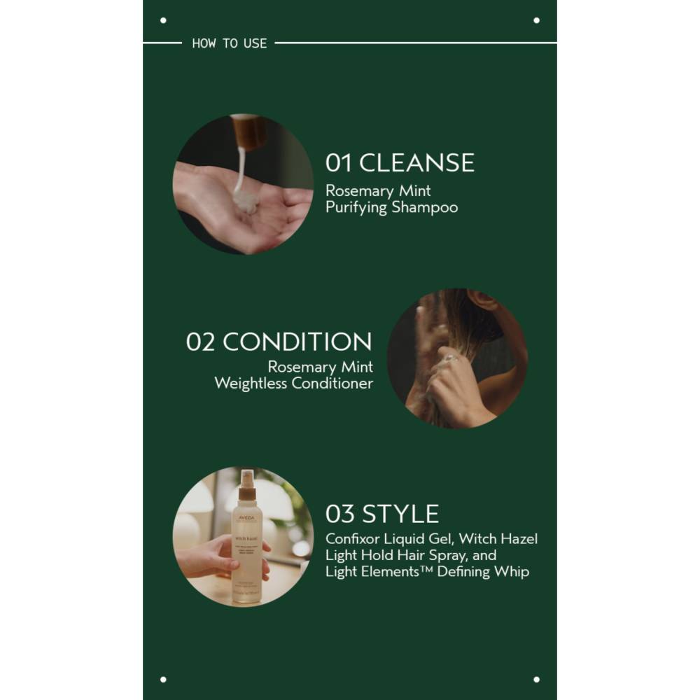 Aveda Rosemary Mint™ Purifying Shampoo is a refreshing and invigorating cleanser designed to deeply purify all hair types, especially those prone to oiliness or buildup. Infused with cooling peppermint and stimulating rosemary essential oils, this shampoo revitalizes the scalp while effectively removing excess oil, impurities, and product residue.