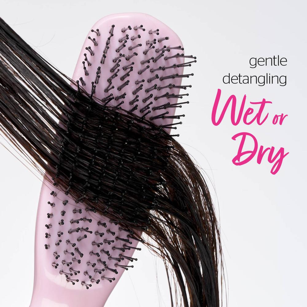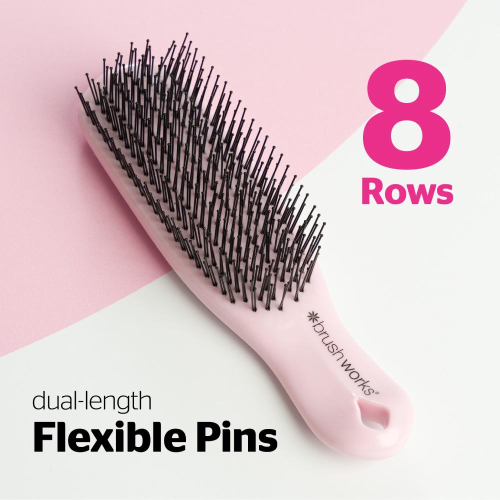 Introducing the Brushworks Easyglide Detangling Brush – your ultimate solution for effortless hair care and styling. Designed with 8 rows of dual-length, flexible nylon pins, this brush glides seamlessly through knots, leaving your hair smooth and detangled. Effective on both wet and dry hair and for most hair types, this brush is perfect for every detangling need – whether you’re combing through conditioner, tackling post-shower tangles, or simply just daily brushing – it can do it all!