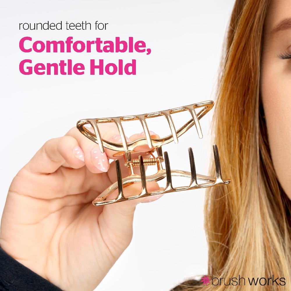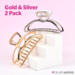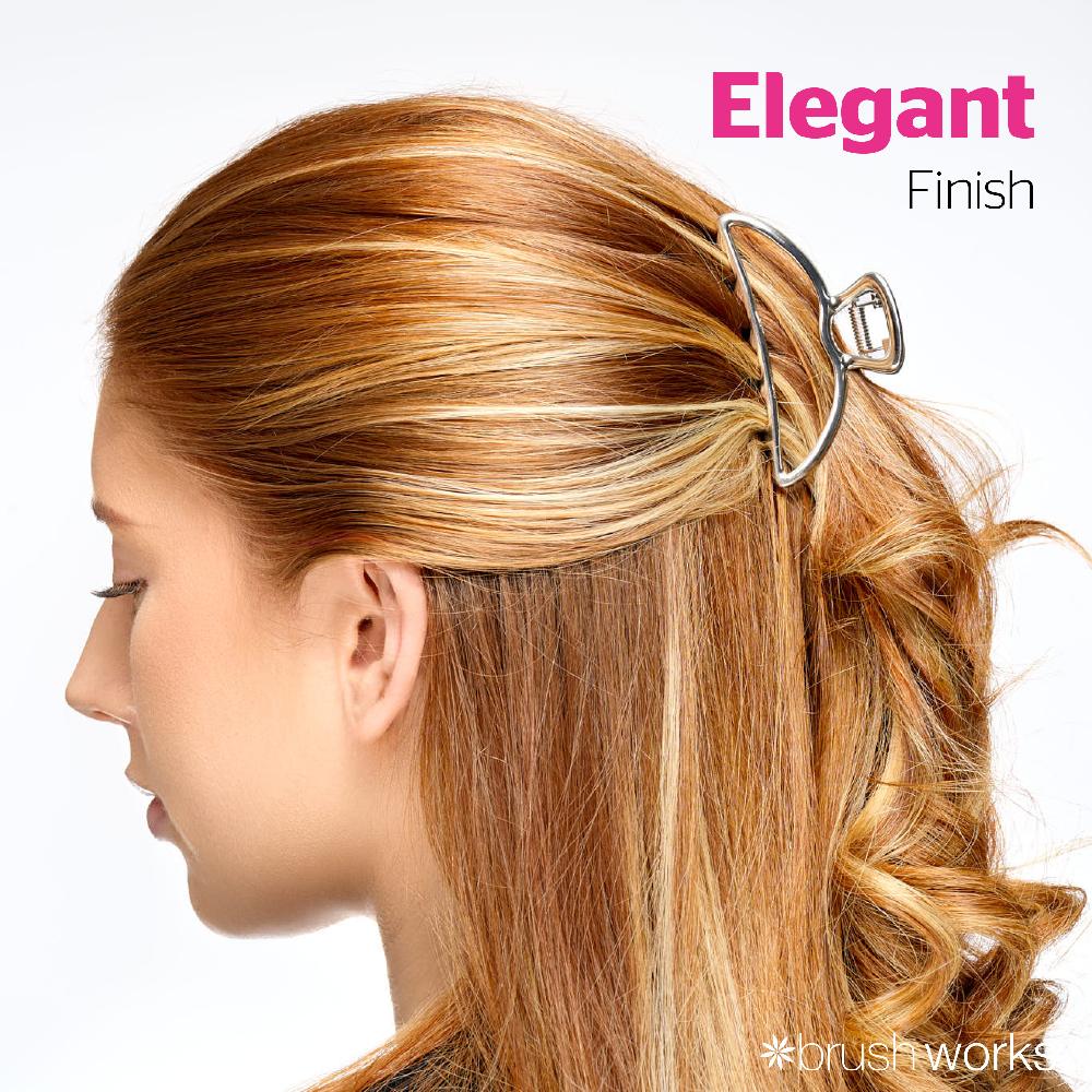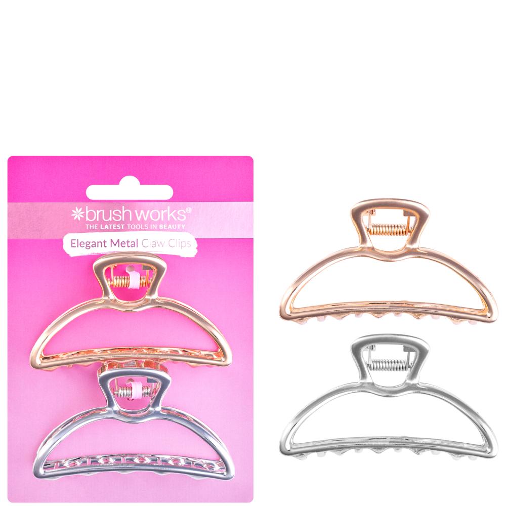 Add a touch of luxe to your everyday routine with the Brushworks Elegant Metal Claw Clips. This two-pack, featuring one gold and one silver clip, is designed to combine elegance with practicality, making it the perfect accessory for both daily styling and special occasions.