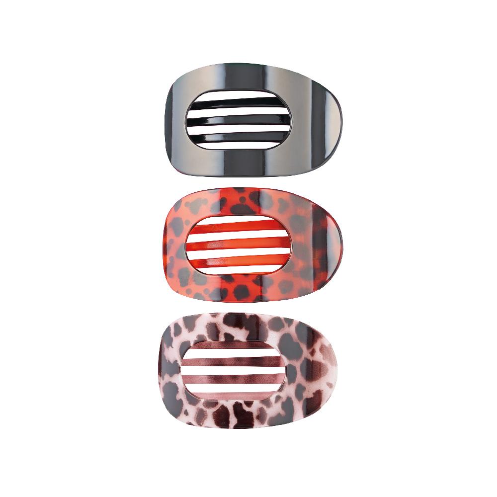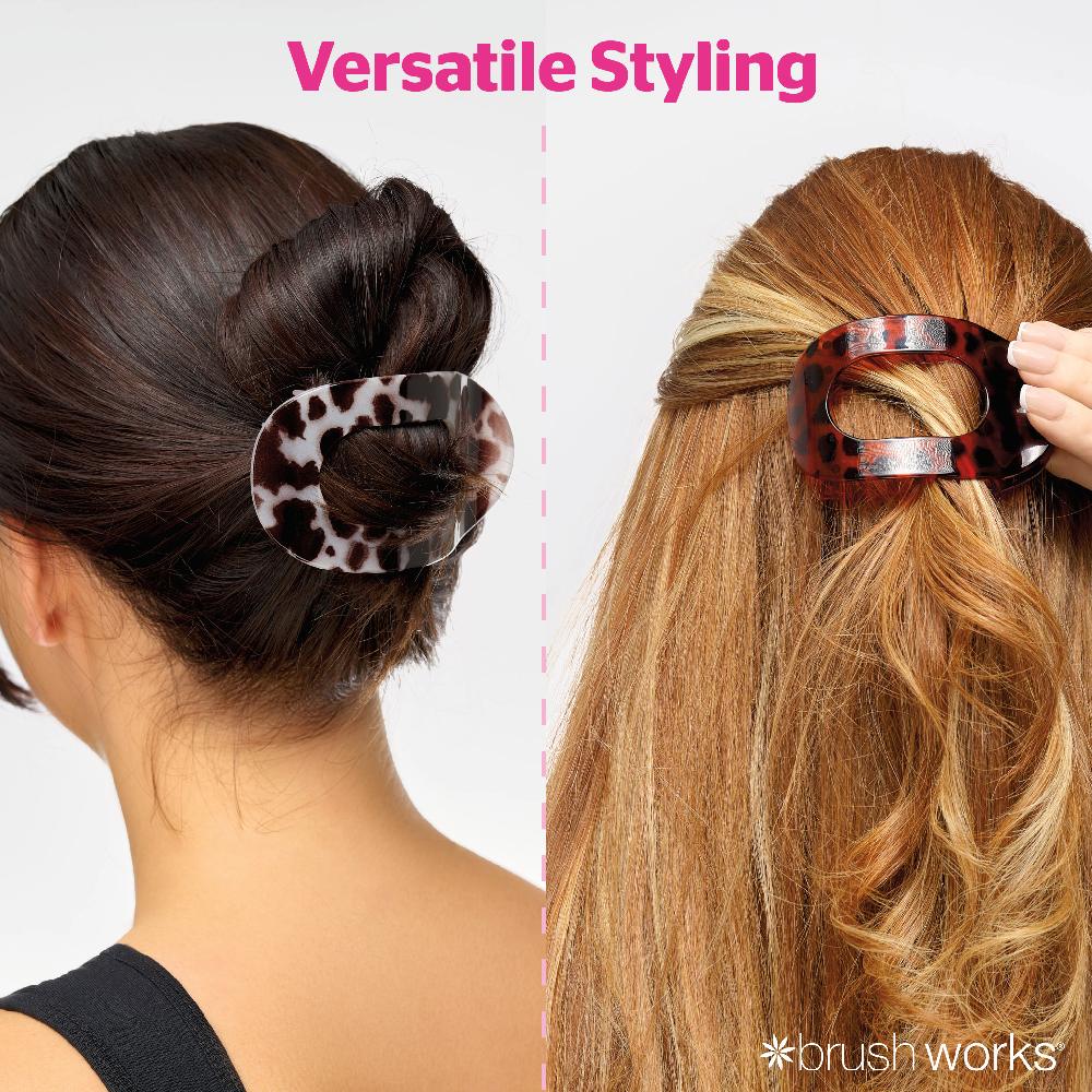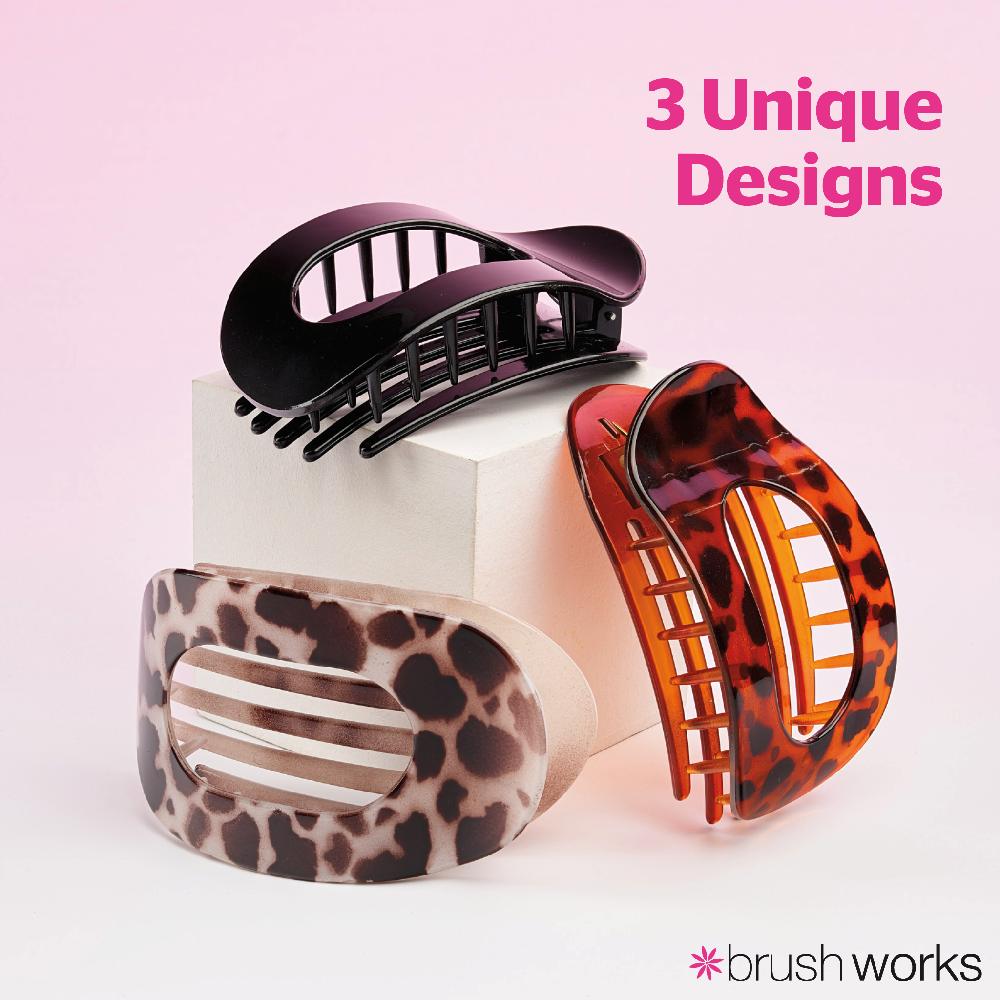 Elevate your hair game with the Brushworks Flat Claw Clips – your new go-to for chic, practical styling! This set of three versatile clips features a trio of stunning finishes: a sleek shiny black, and two shiny tortoiseshell designs. Designed with comfort in mind, they feature a flat shape that is a total game-changer. Whether you’re lounging, working or driving to work, these clips let you rest your head without ruining your hairstyle or being uncomfortable.