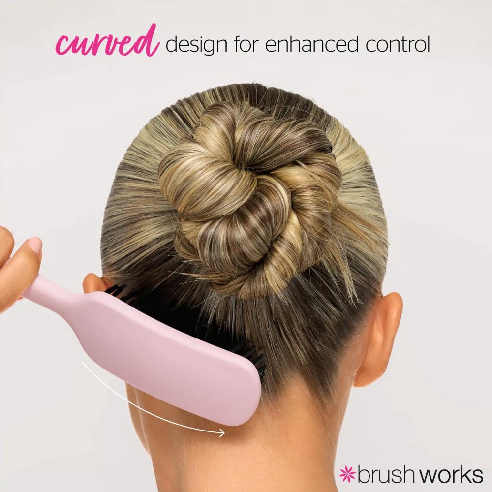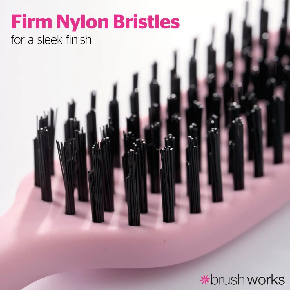 Achieve salon-quality results with the Brushworks Slick Back Bristle Brush—designed to make sleek, polished hairstyles effortless. Made with firm nylon bristles, it provides superior grip and control, effortlessly smoothing hair and taming flyaways for a flawless finish. The curved shape of the brush is ergonomically designed to hug the contours of your head, making it easier than ever to create those perfectly slicked-back styles in seconds.