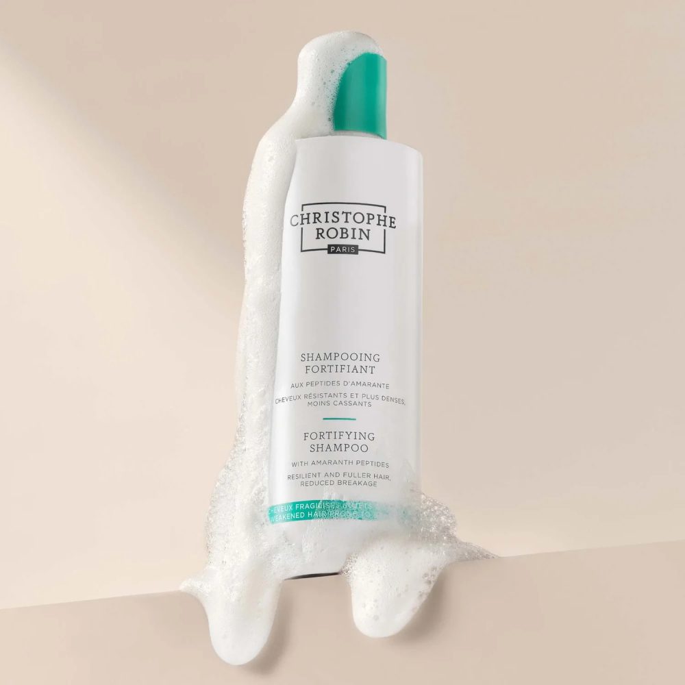 Christophe Robin's Fortifying Shampoo with Amaranth Peptides is scientifically proven to reduce hair fall caused by breakage and snapping by 5 times after just one use. This gentle, sulphate-free shampoo helps make hair look thicker and fuller by reinforcing fragile strands, leaving hair stronger, shinier, and more resistant to daily damage.