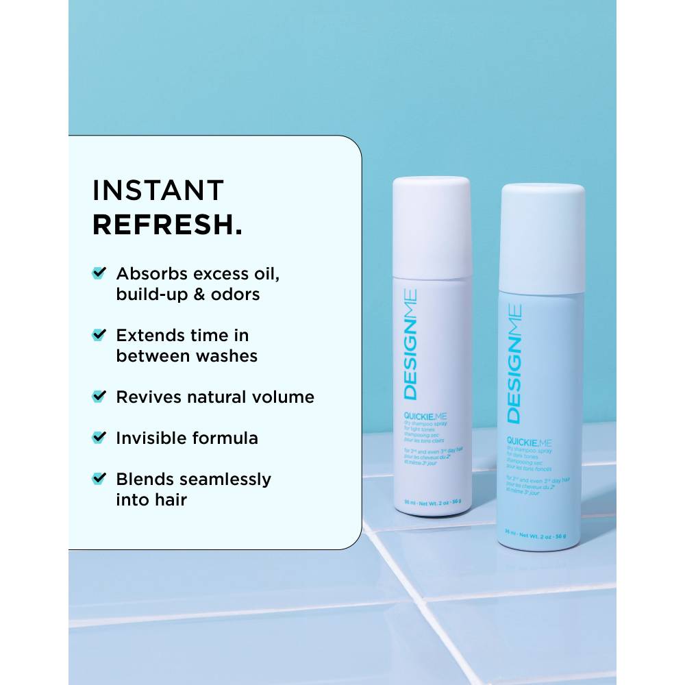 Give the gift of endless good hair days with our lavish little QUICKIE.ME dry shampoo ornament for dark hair tones! An invisible dry shampoo that eliminates oil, sweat, and odors to instantly revive and refresh hair. Perfect for dark hair tones—brown, black, red & colored—it blends seamlessly with no residue or white cast. Enriched with rice starch, QUICKIE.ME Dry Shampoo extends your style and restores natural volume, delivering a fresh, full-bodied finish anytime you need it.