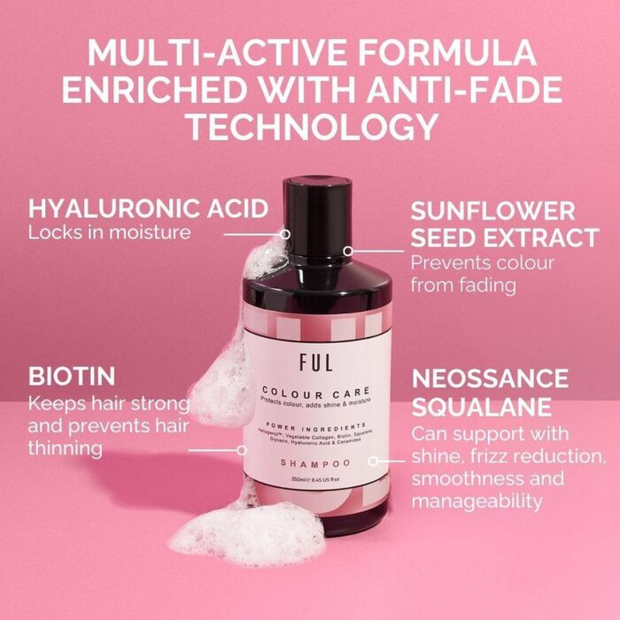 FUL Colour Care Shampoo is a gentle, sulphate-free shampoo that locks in colour, prevents breakage, and enhances shine for colour-treated hair. Its nourishing formula protects, repairs, and revitalises while keeping hair soft, smooth, and manageable. This shampoo leaves hair glossy and vibrant with a healthy, glass-like finish.