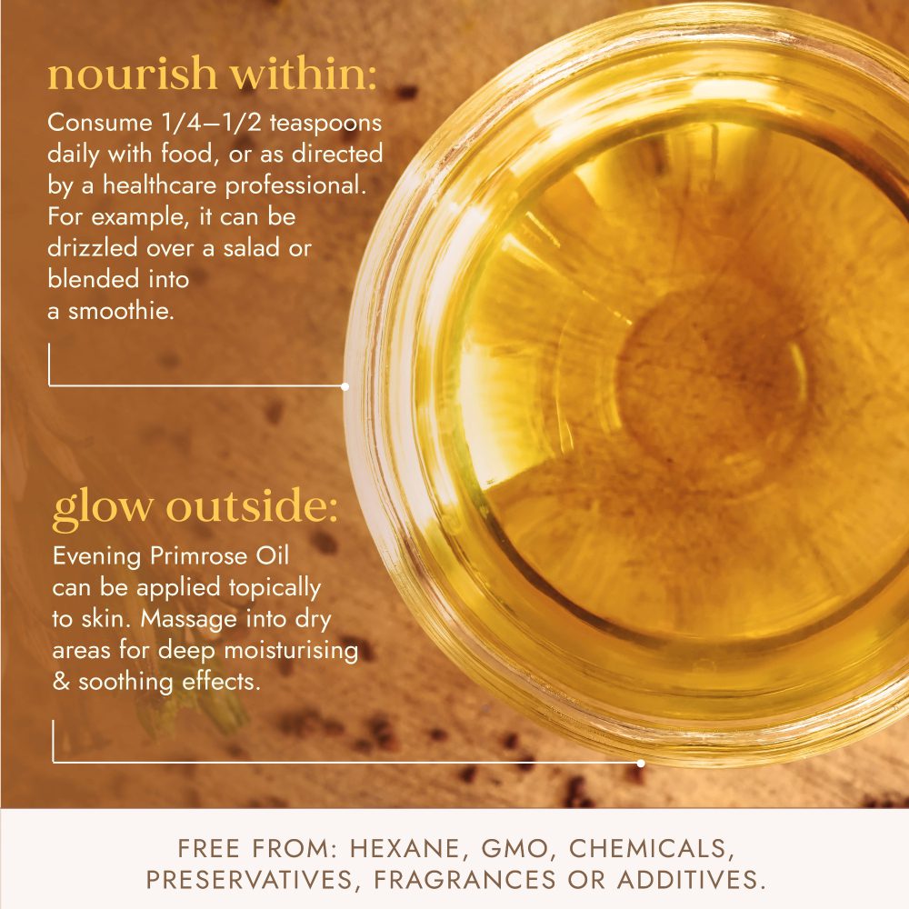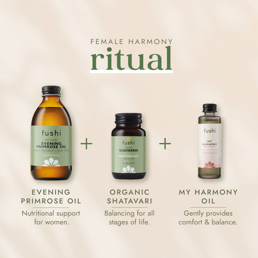 fushi Organic Evening Primrose Oil 100ml Benefits: Provides nutritional support for women. Key Ingredients: 100% pure & organic Fresh-Pressed® Evening Primrose Oil. Targets: Internal & external health - Anti-ageing, minimum 10% GLA, Omega 6 & PMS symptoms. Benefits: INNER HEALTH Fushi Organic Evening Primrose Oil is naturally rich in gamma-linolenic acid (GLA) and is renowned for its role in providing nutritional support for women as well as being a nourishing internal oil. PMS SUPPORT According to studies, Evening Primrose Oil may help relieve PMS symptoms, such as bloating and breast pain. NOURISHING & ANTI-AGEING SKIN SUPPORT Fushi Fresh-Pressed® Evening Primrose Oil also provides benefits as a skin oil. It contains at least 10% GLA (Gamma-Linolenic Acid) which may help to reduce skin inflammation. Its fatty acid content is key for boosting skin suppleness, whilst phytosterols help keep skin hydrated. FUSHI'S PROMISE Your favourite oil is unrefined, cold and Fresh-Pressed®, 100% pure fo maximum potency and non-toxicity.