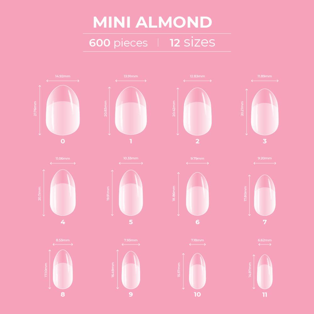 Glitterbels Dream Coverage Full Tips Almond Mini (12 sizes x 50)