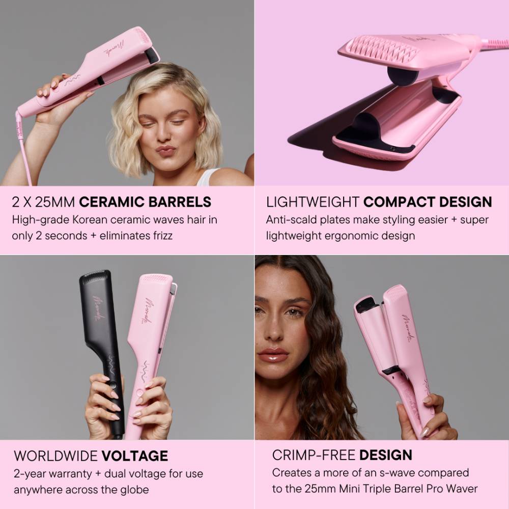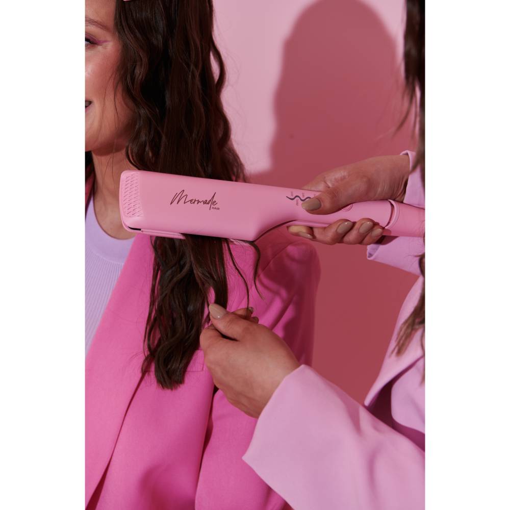 Achieve stunning beachy waves effortlessly with the Mermade Hair Double Waver in Pink. This innovative tool features a lightweight, compact design and advanced heat technology that styles your hair in just two seconds.