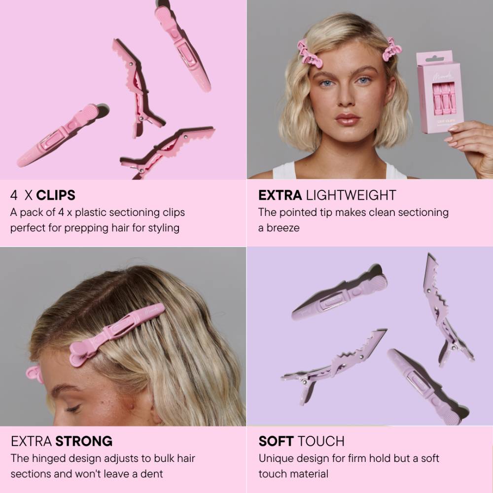 Introducing the trendiest Grip Clips for easy sectioning and styling of your hair. In a chic signature pink, these clips are lightweight yet durable, providing the ultimate hold for any hair type.