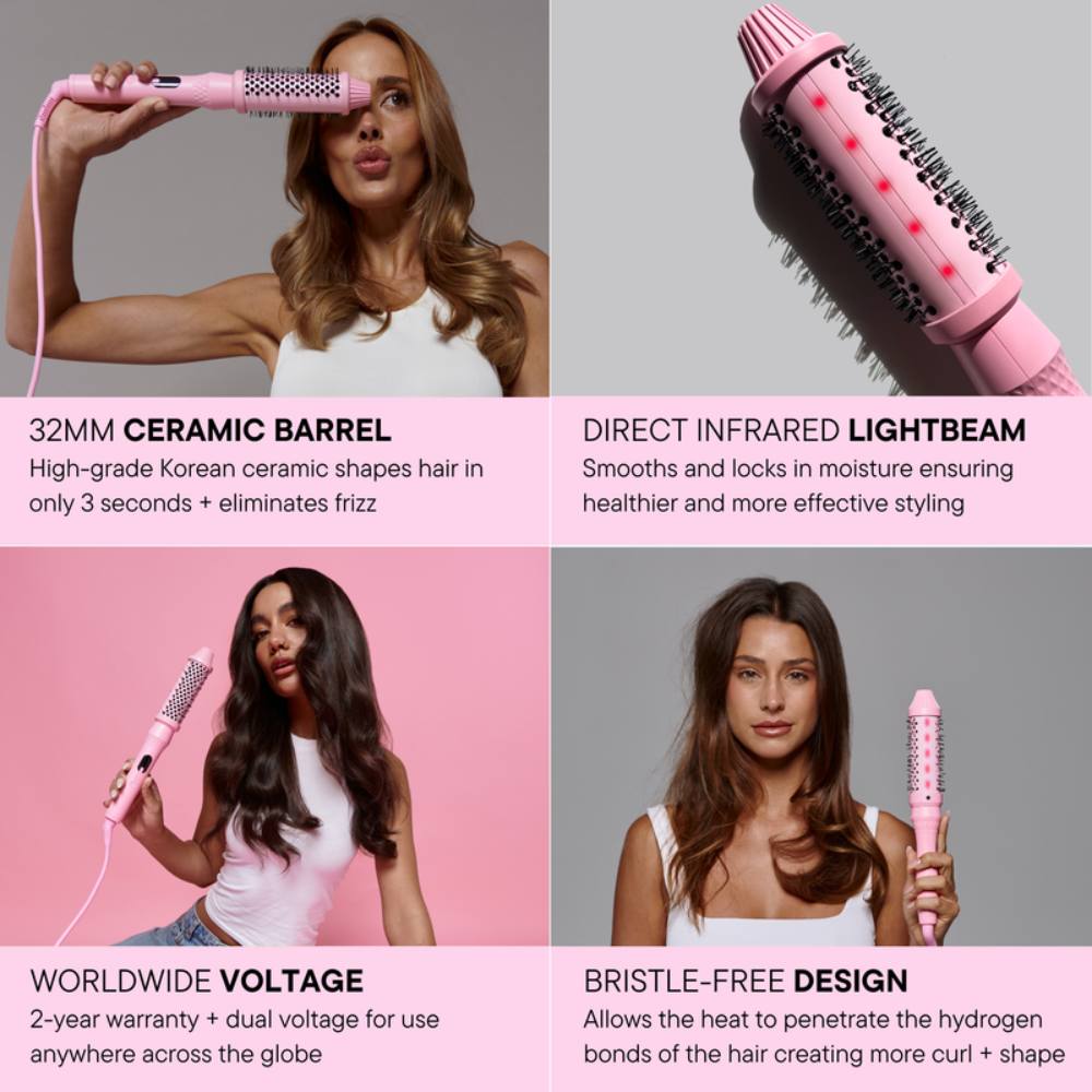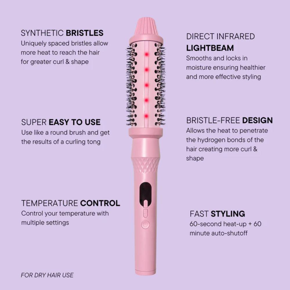 The innovative Mermade Thermal Brush is a heated round brush that delivers instant volume, shine and bounce. Its advanced infrared light beam adds shine, reduces frizz & locks in moisture. The flexible tangle-free bristles glide through the hair, shaping it without tangling. Its innovative bristle-free zones allow more heat to penetrate the hydrogen bonds of the hair creating more curl & shape than other thermal brushes.