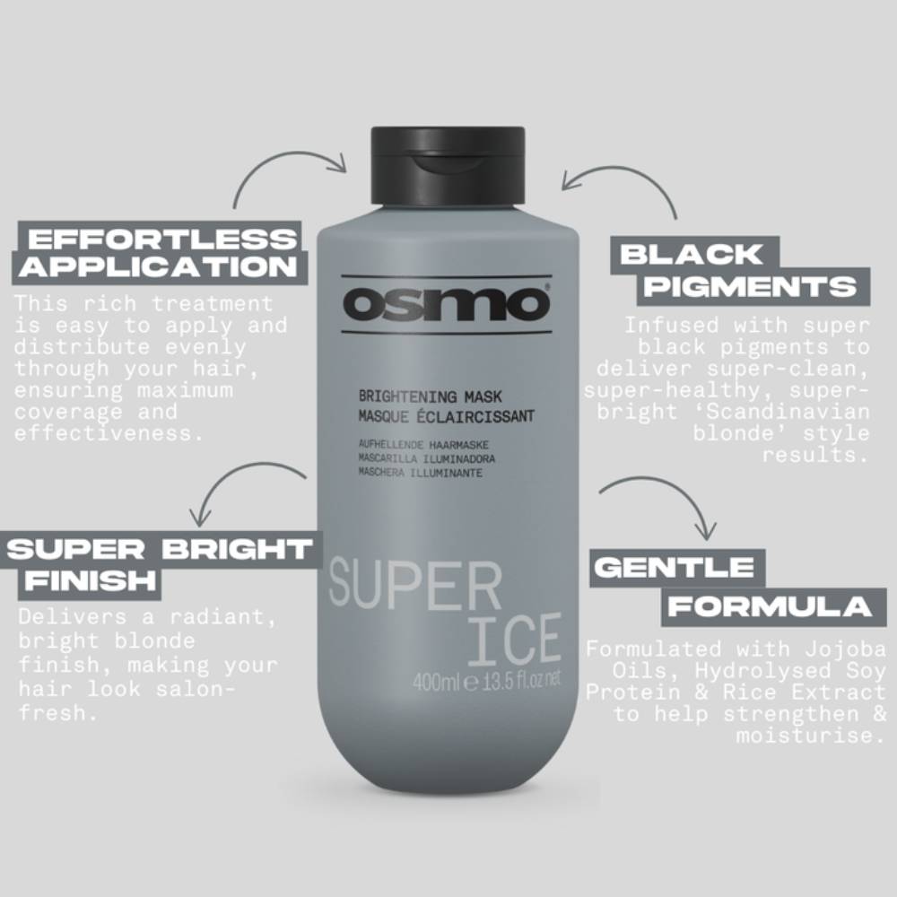 The Super Ice Shampoo & Mask Duo is your ultimate blonde care power pair. This black-pigment shampoo and ultra-rich conditioning mask work together to neutralise yellow and brassy tones, leaving your light blonde hair cool, clean, and brilliantly icy - without staining. Enriched with Rice Seed Extract, Aloe Vera, and Hydrolysed Soy Protein, they deeply nourish, strengthen, and smooth every strand for hair that’s luminous, silky, and fresh.