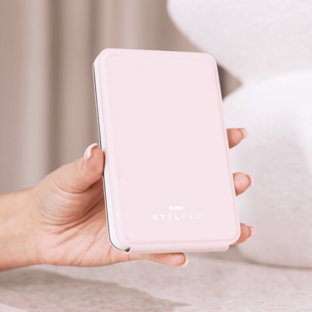 STYLPRO LED Mini Mirror is a lightweight, slimline, and portable mirror, lined with LED light panels for the perfect for touch ups on the go.