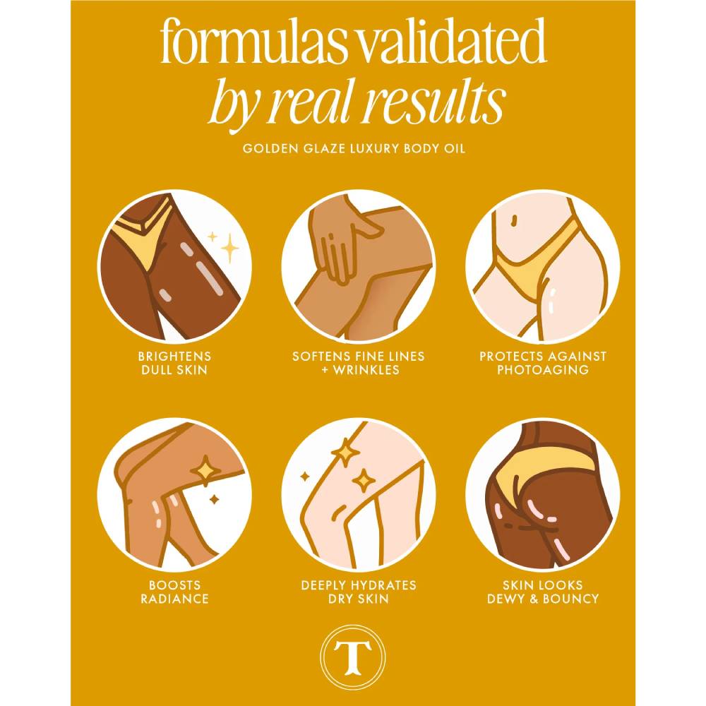 - This silky, smooth-glide body oil blends into skin for instant radiance that lasts all day.