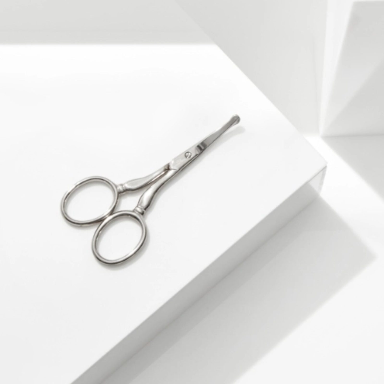 The rounded precision blade tip of the Facial Hair Scissors curves away from skin to safely cut facial, nose, and ear hair.