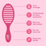 - Blow-dry safe HeatFlex™ bristles gently glide through the hair without pulling or snagging.